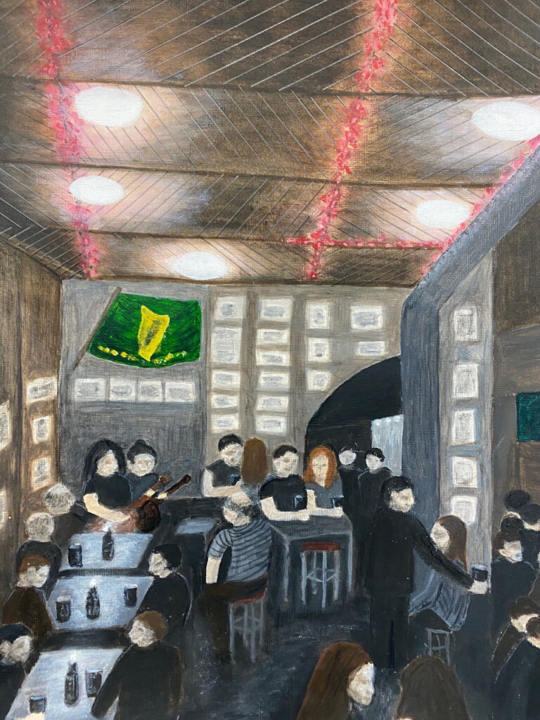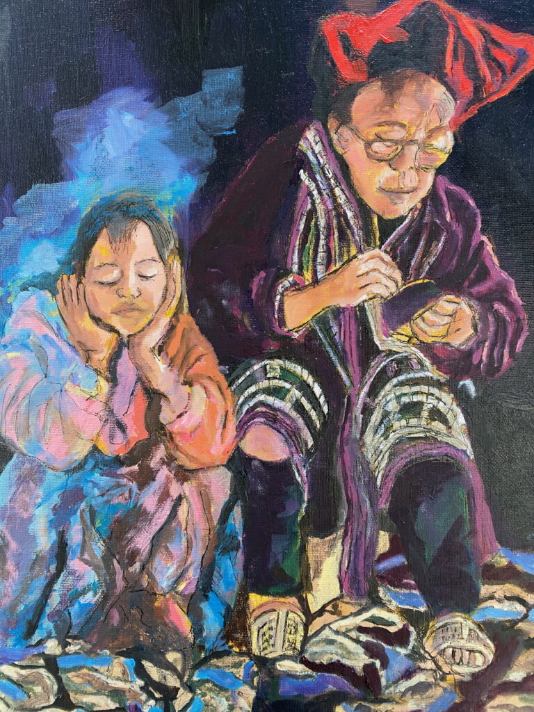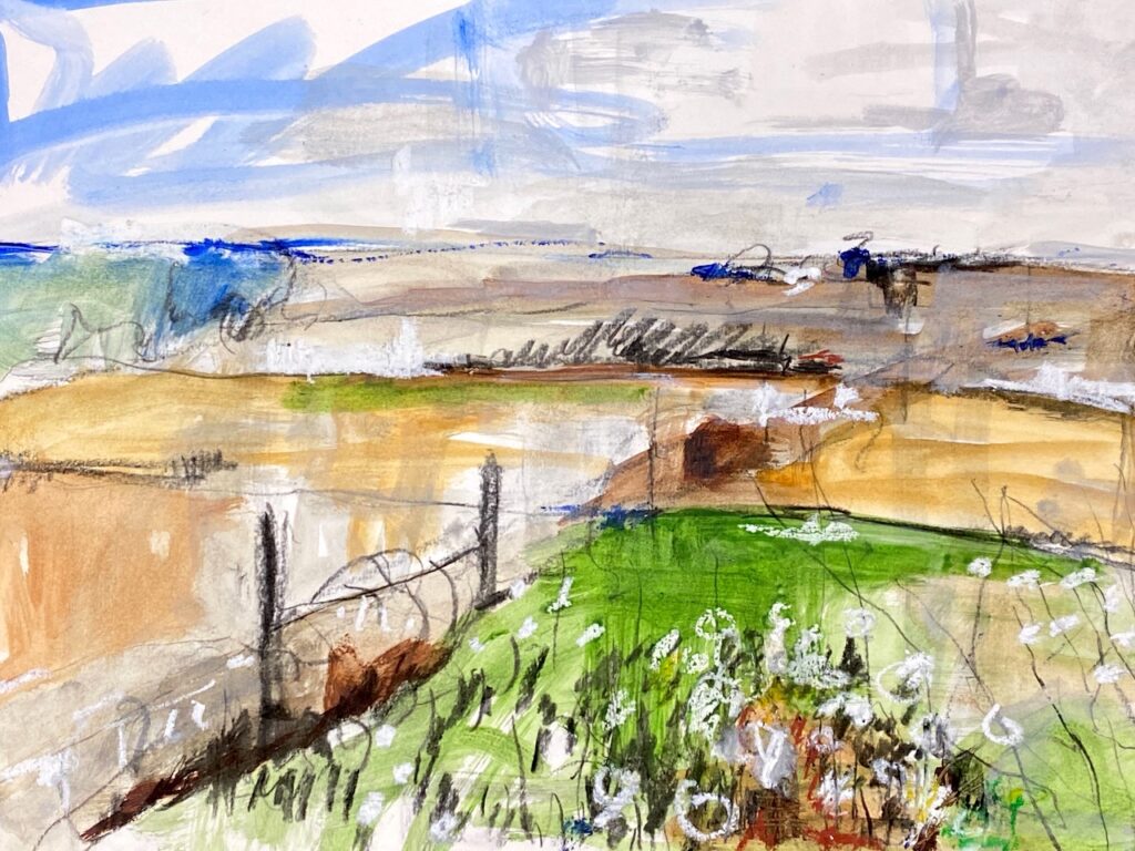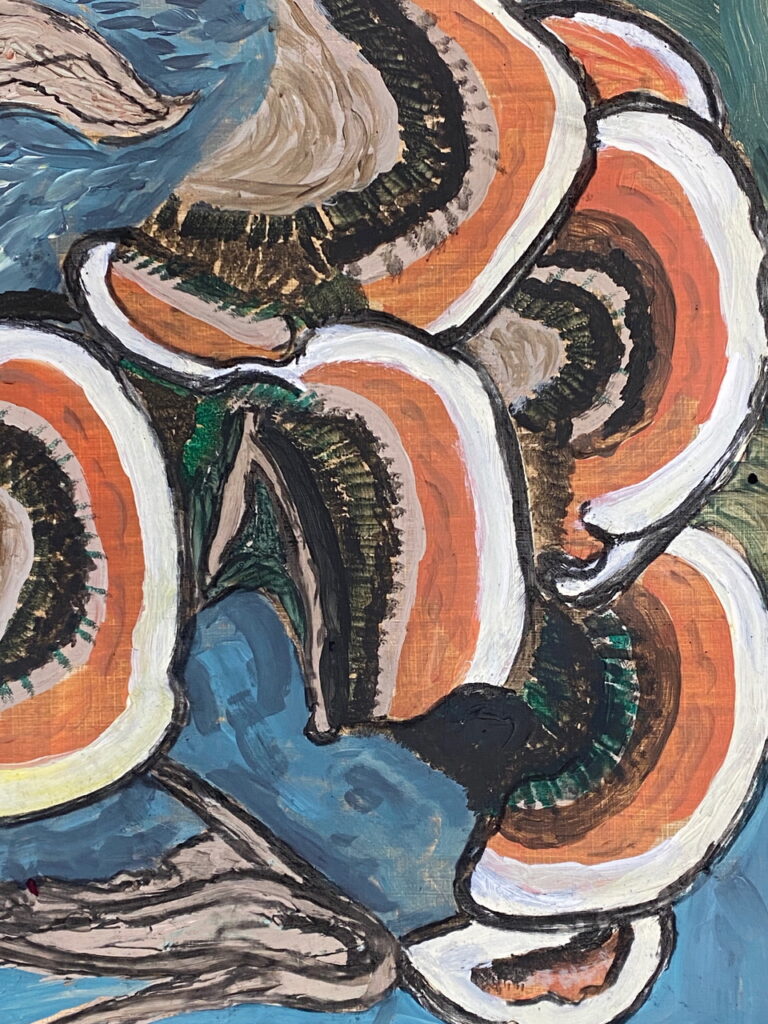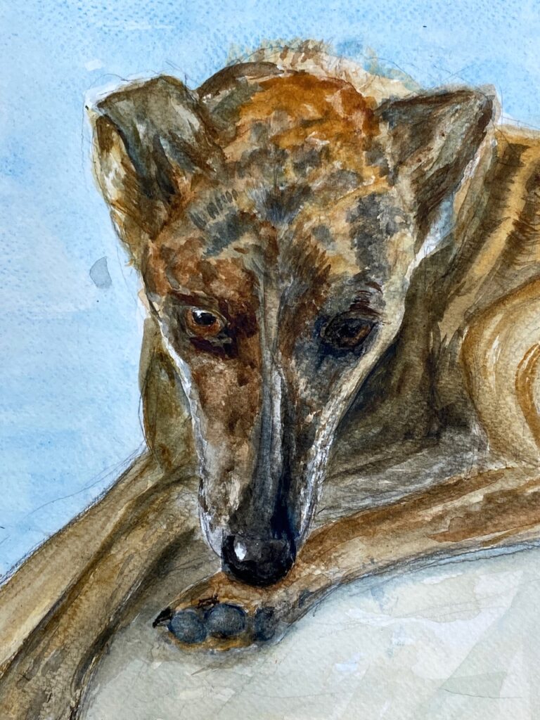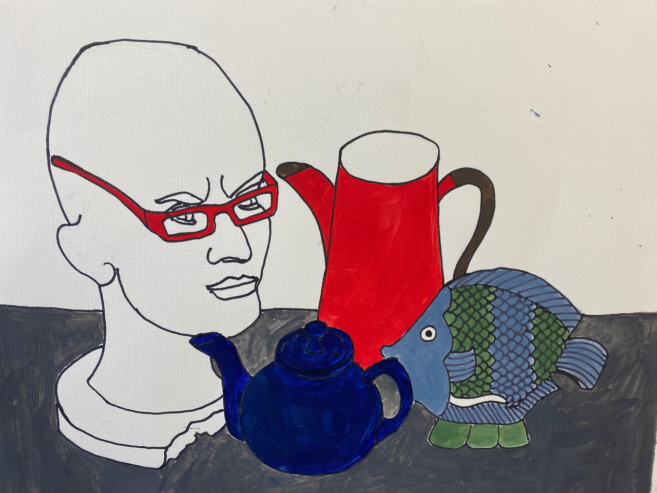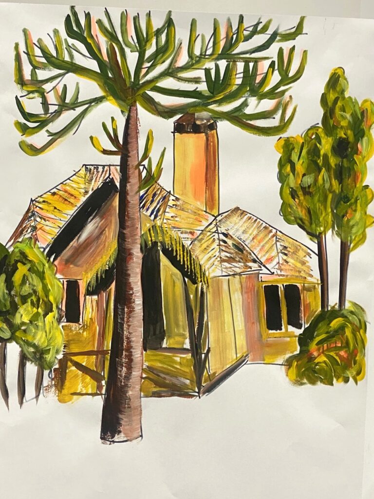 We’ve come to the end of yet another lovely term of teaching on Wednesdays, where students of all abilities come to enjoy the studio, and to learn more about painting and drawing. Whereas half of the sessions each term are given to teacher led workshops, challenging students outside of their comfort zones, the other half of the term is given to painting subjects meaningful to themselves. During the last session of the autumn term, I asked each student present for one piece of work to photograph to share here on this blog post. I’ve also included a piece by each of the four students I meet on Zoom each week.