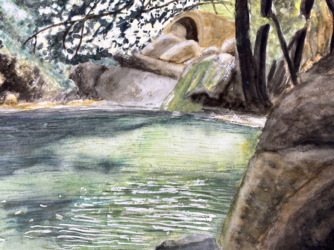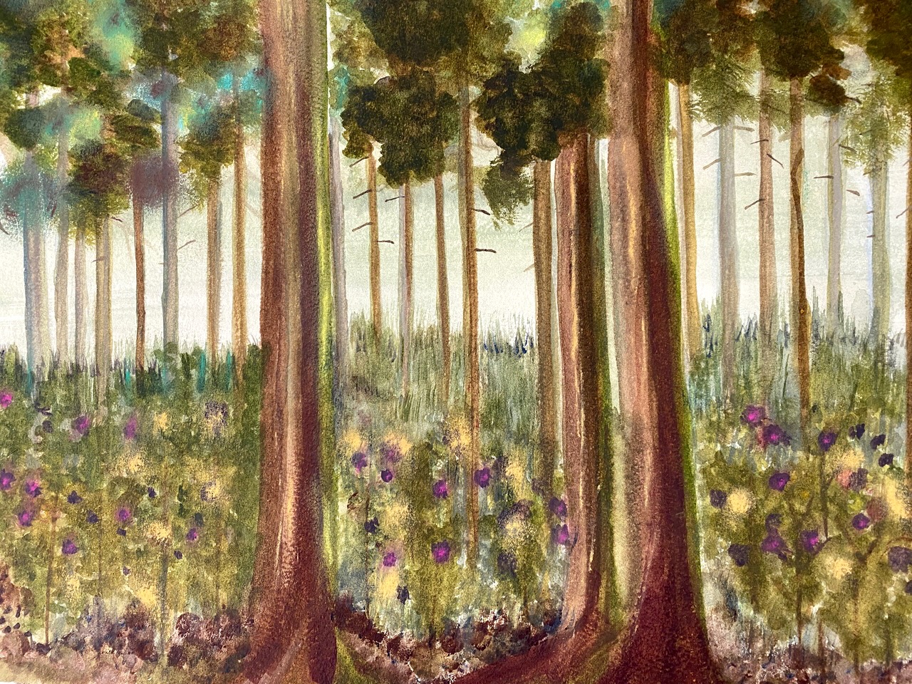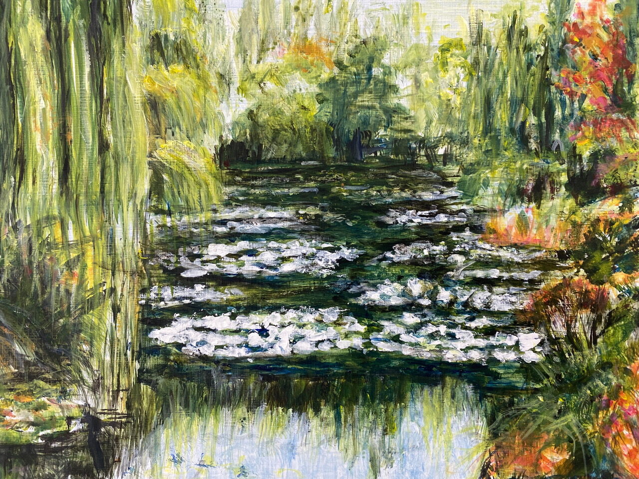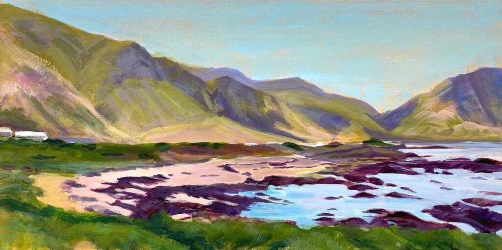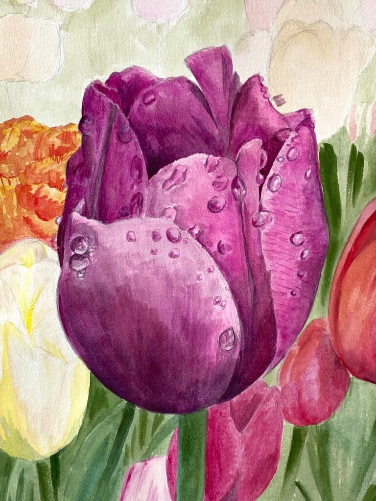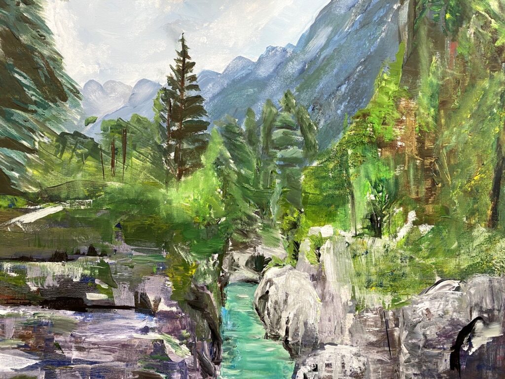 We’ve come to the end of yet another lovely term of teaching on Wednesdays, where students of all abilities come to enjoy the studio, and to learn more about painting and drawing. Whereas half of the sessions each term are given to teacher led workshops, challenging students outside of their comfort zones, the other half of the term is given to painting subjects meaningful to themselves. During the last session of the autumn term, I asked each student present for one piece of work to photograph to share here on this blog post. I’ve also included a piece by each of the four students I meet on Zoom each week.