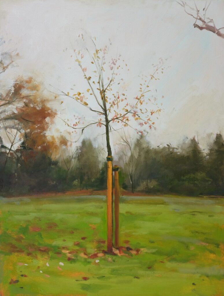 Back in November I painted this tree, from a photograph I had taken at 9.20am on Thursday 12th December 2013. When I was painting it, I thought I was painting the tree I used to walk past on the way to the primary school my children went to at the time. However, having now looked at the photographs taken either side of this one on my photostream, I now realise the tree is a different one, somewhere else entirely. I can’t remember this actual tree, nor exactly where it is, so although the photograph tells me that this moment did exist, it feels very nowhere-like now. Almost imagined. This very much relates to the ‘Gently Out Of Time’ work I’ve been making recently.