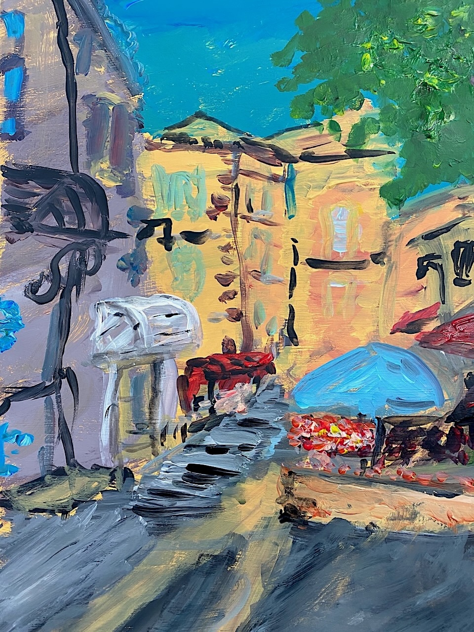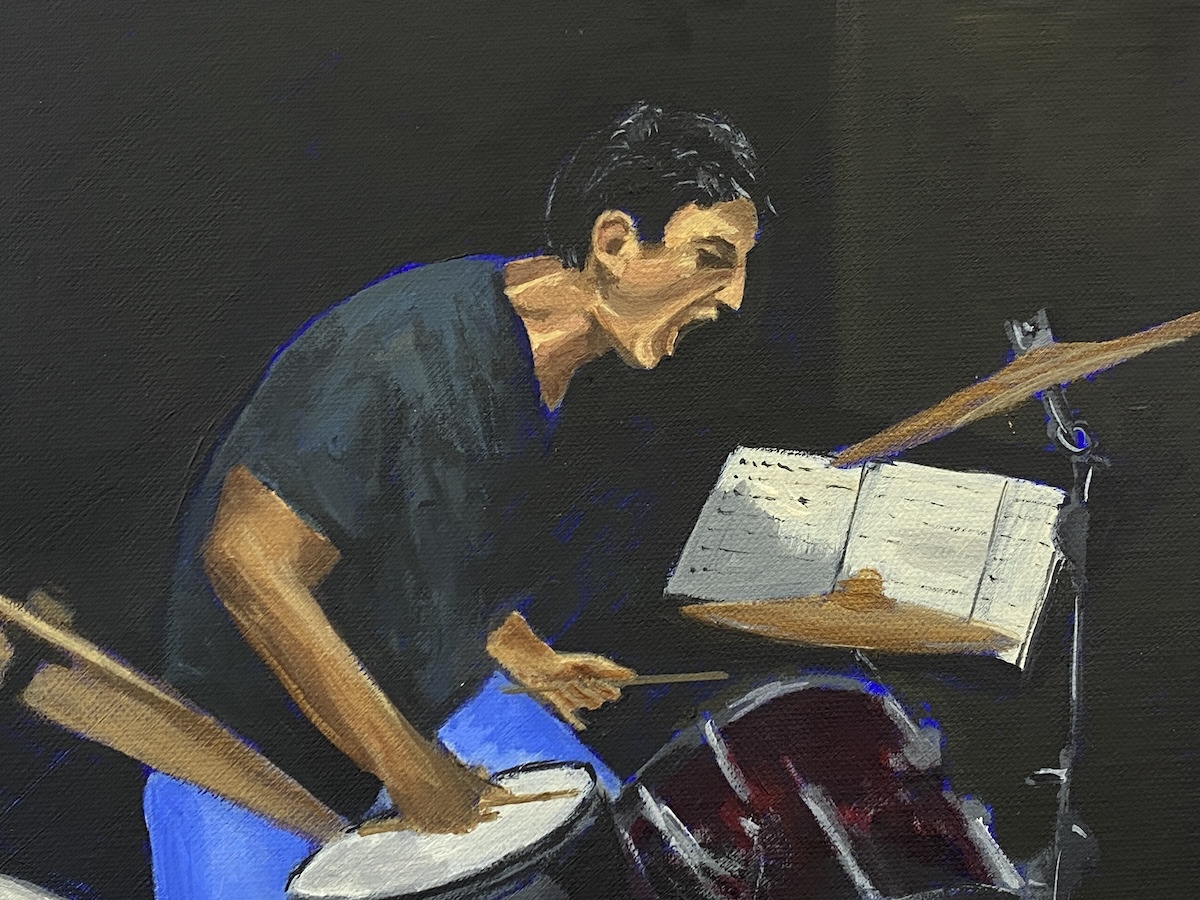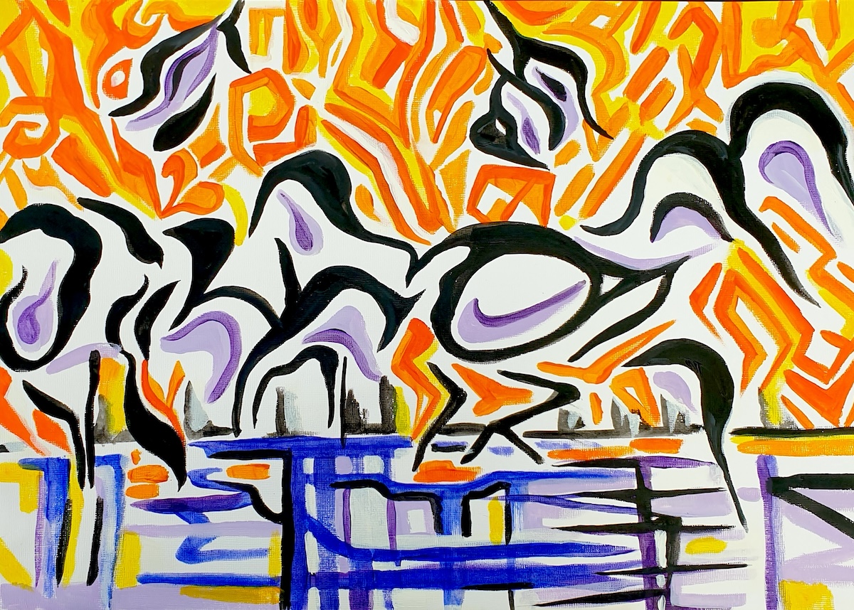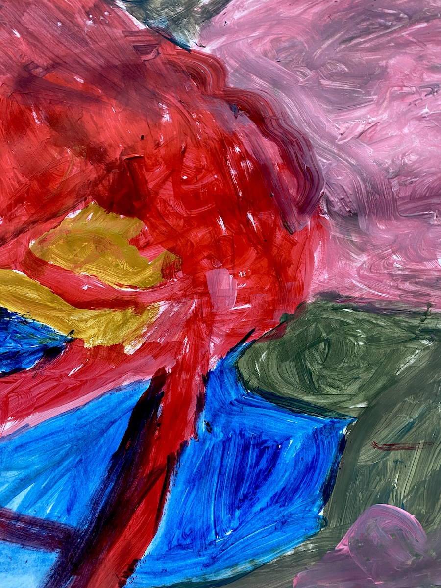 Whereas half of the term’s sessions are dedicated to lively, fast paced, one off, ‘mystery challenge’ workshop sessions, the other half are devoted to helping students develop their own ideas for making paintings. Here are some of the paintings that have been produced by painting students in the studio during the recent spring term.